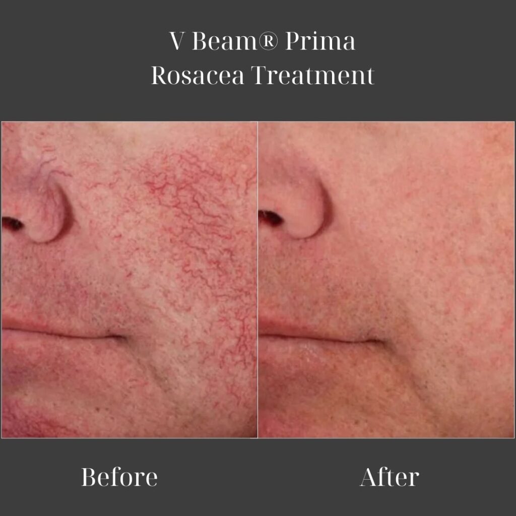 The V Beam laser is a pulsed dye laser that delivers an intense, but gentle, burst of light into targeted areas, causing superficial blood vessels in the skin to shrink or disappear. V Beam effectively treats skin conditions like rosacea, enlarged capillaries, hemangiomas, port wine stain birthmarks, and poikiloderma. The versatile V Beam Prima can also treat scarring, including stretch marks.